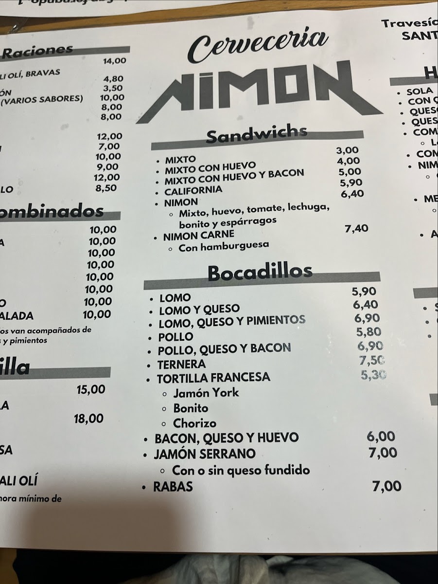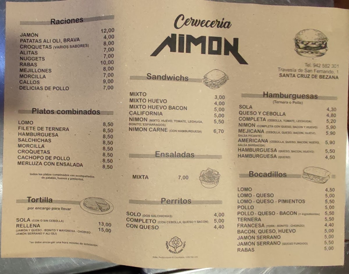 Welcome to Cafetería Nimon, an inviting eatery located in the heart of Santa Cruz de Bezana, Cantabria. The menu here is a delightful medley crafted to satisfy every palate. Renowned for their mouthwatering tortillas, especially the jamón y queso pincho, they effortlessly combine flavor with generous portions, ensuring no one leaves hungry.